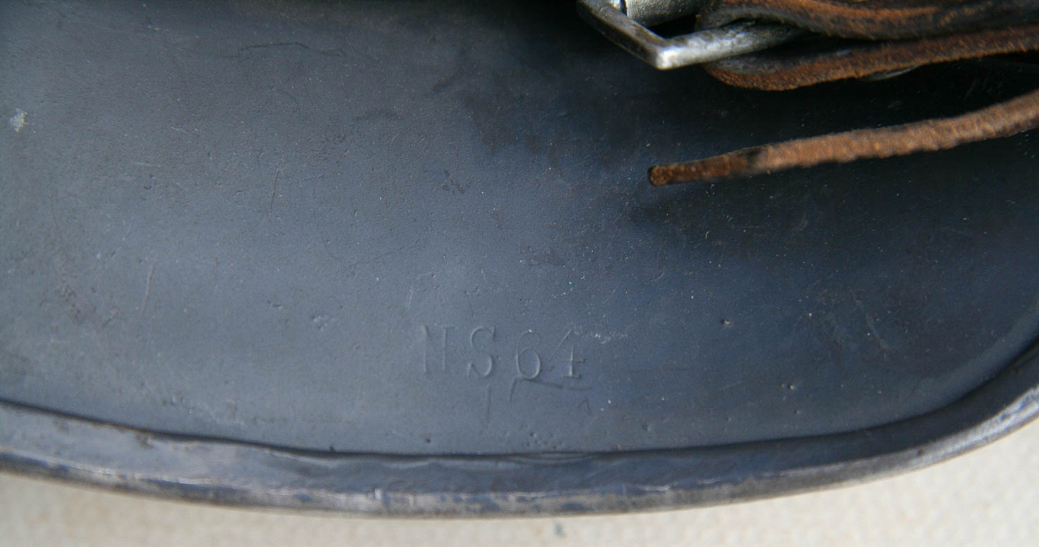 Item H514: Exterior clearly displays remnants of a whitewash over the exterior of the helmet. Very nice remains of the whitewash in the low surfaces and corners of the rivet heads. Authentic and factory applied Heer adler decal commensurate with the overall wear. Mega tight liner system 100% original to the helmet. All three untouched split pin rivet fasteners intact and complete with all three slotted washers. Goat skin leather liner is undamaged, fully pliable and has taken on a darkened aged appearance. The chinstraps are repurposed from a British Brodie helmet. I have had 3 helmets over the course of my collecting time with brodie helmet chinstraps. Overall very good to excellent condition…