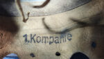 Item H683: Exterior displays moderate wear with approx. 92% of the factory feldgrau paint remaining. Authentic and factory applied Heer adler decal proportionate with the overall wear and rates approx. 90%. Liner is tight fitting but is devoid of slotted washers. Goat skin leather liner is undamaged, fully pliable and has taken on a darkened aged appearance. Original drawstring is in full length. Buckle end of chinstrap is aluminum. Long portion of strap is in full length and pliable with manufacturer and date on tip. Nicely named in white paint to the German soldier on the rear of the flared edge which shows great patina and crazing. Uffz is an abbreviation for Unteroffizier or translated to corporal. Overall very good condition.