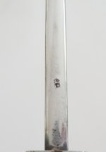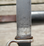 Harder to find maker Arthur Shuttelhöfer & Co. No cracks or chips on handle. Blade very nice with some cross graining. No dents in scabbard. Portapee has some fraying. Hangers complete. Nice rig in very good condition.