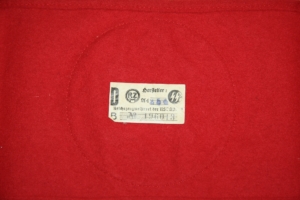 National Socialist German Workers’ Party (NSDAP) wool armband measures 19 inches long. It is in an unsewn and unissued state. It is of multi piece construction. Black swastika is sewn on the white disc which is then sewn on the red armband. Very clean and crisp in color. No holes or damage. On the reverse is the Reichszeugmeisterei (RZM) tag which features the SS runes. Excellent condition.