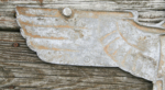 Rheinmetall Railway eagle measures approx 27 inches from wing tip to wing tip. Obverse exhibits a darkened patina from the smokestack of the locomotive. Three holes drilled for display purposes. One on each wing tip and one at the base of the mobile insignia. The reverse has four threaded bolts. All four nuts were removed from the locomotive or boxcar leaving the bolts intact and not sawed off. Mid way in the body of the bird is the manufacturer logo for Rheinmetall which is a metal foundry still in operation today in Germany. Below the logo is the stamp for the metal composition elements GAl – Mg(Hy. Overall very good condition.
