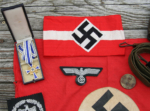 7) NSDAP Banner 17 1/2″ x 15 1/2″ $125 SOLD 8) Red Cross Armband $90 SOLD
