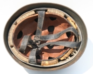 Item H463: Large size. Liner original to helmet. Split pins have not been tampered. Leather pliable. Chinstrap in full length and pliable. Excellent condition