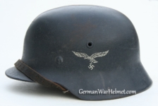 Item: H320 Exterior displays very minor wear with only storage marks evident. Factory schiefergrau (slate gray) paint rates approx 98%. The authentic and factory applied Luftwaffe adler decal is in superior condition and rates a solid 99%. Tight fitting liner system original to the helmet. All three untouched split pin rivet fasteners intact and complete with all three slotted washers. Goat skin leather liner fully pliable, undamaged and still retaining a rich creamy color appearance. Drawstring is in its full length with original knot still in place and sealant on both tips. Buckle end of chinstrap is steel with approx 90% of the gray paint remaining. Long portion of strap is in full length and pliable. Manufacturer and date stamp on tip is indiscernible. Overall excellent high quality condition.